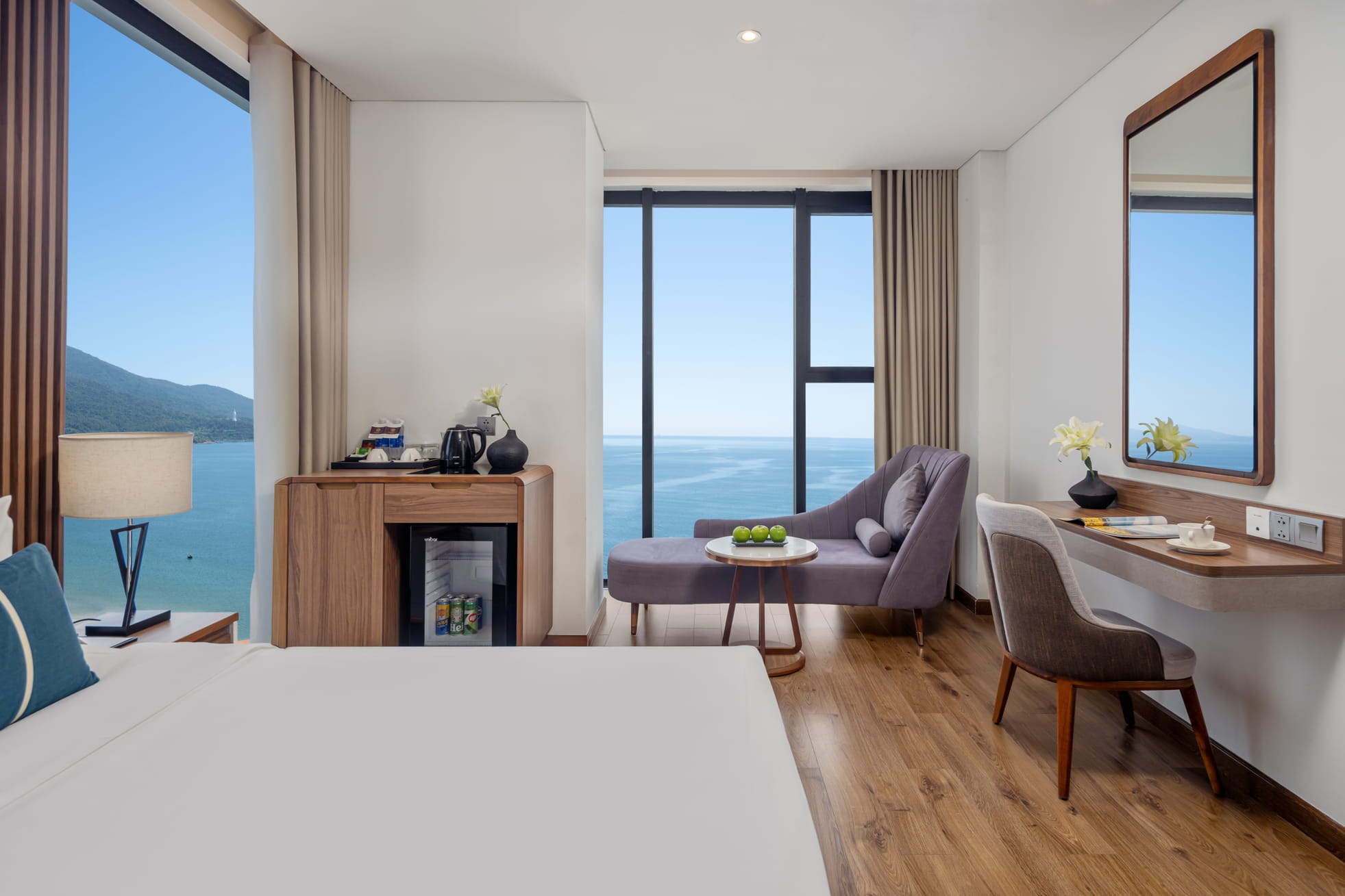 Enjoy the deep blue of the ocean by day and the charming glow of Da Nang’s streets by night with a warm cup of coffee in hand. The Deluxe Ocean Queen, located on floors 5 to 26, offers partial ocean and city views along with daily afternoon tea, promising a memorable stay.