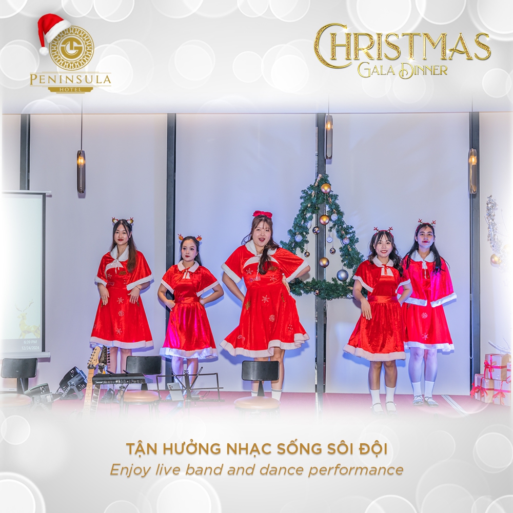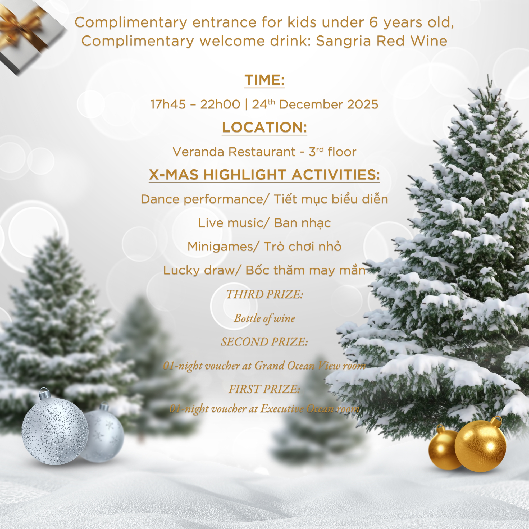 Celebrate the magic of the festive season with your loved ones at the Peninsula Hotel Danang's Christmas Gala Dinner. Immerse yourself in joyful Christmas melodies and indulge in a lavish holiday-themed buffet spread. Meet Santa Claus and join our fun mini-games.