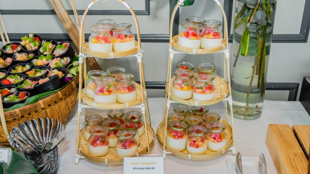 Beyond premium teas, soft European pastries and fresh tropical fruits, The Lam Afternoon Tea delights guests with a charming twist - featuring traditional Vietnamese sweets such as bánh da lợn (layer cake), mango cake and chè dưỡng nhan (sweet herbal dessert).