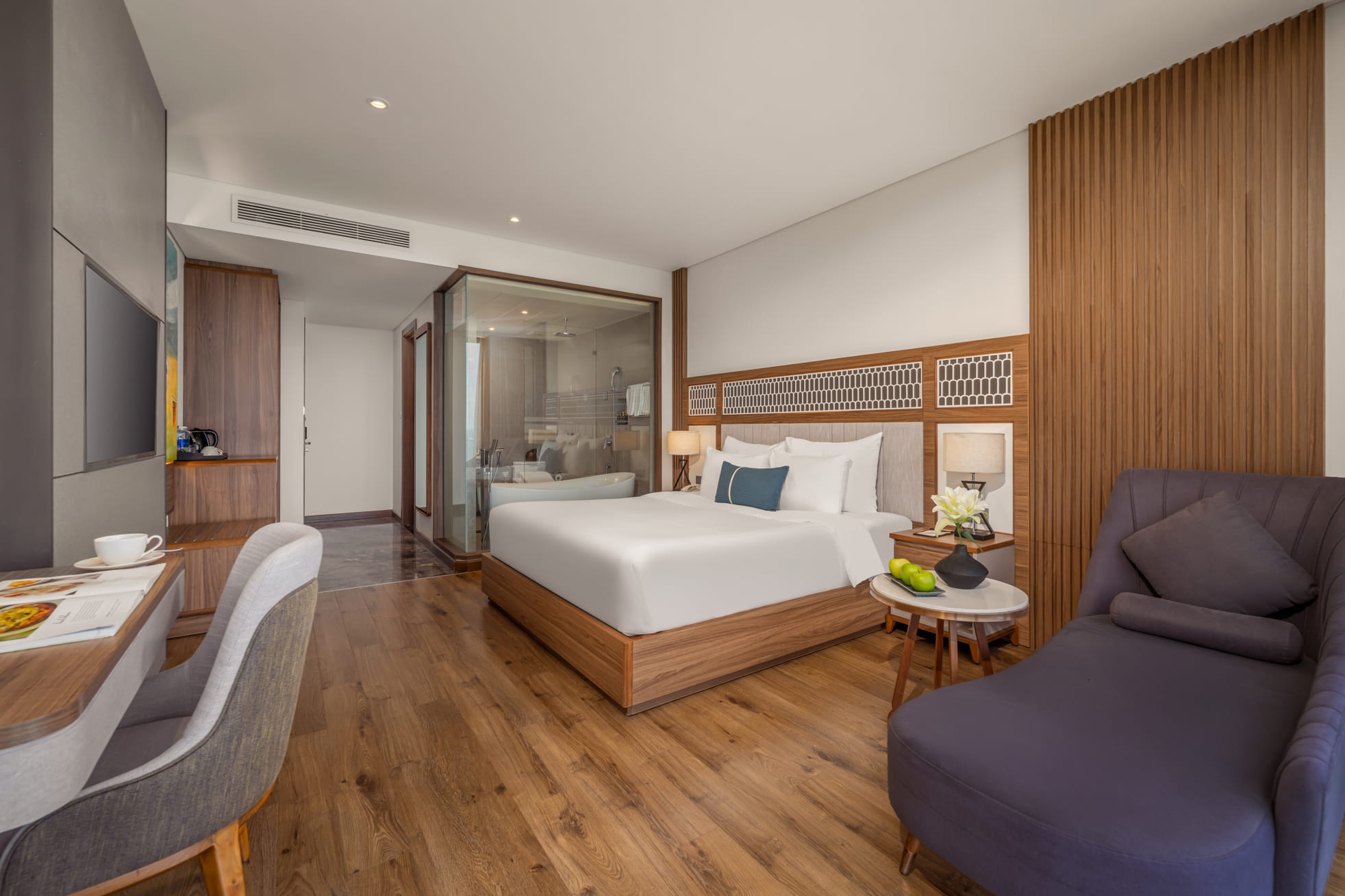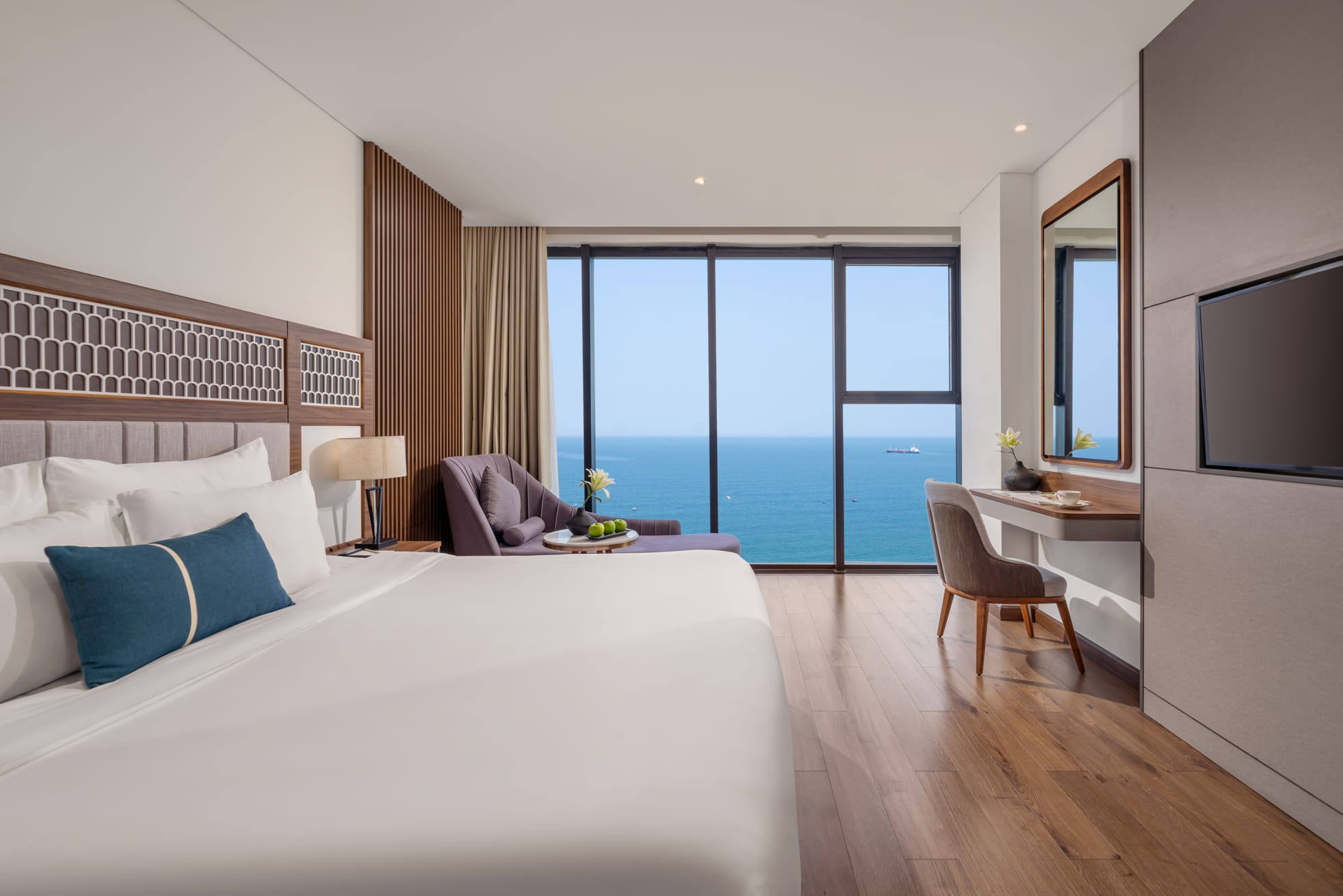 Tầm nhìn ra biển dường như trọn vẹn trước mắt bạn khi nhìn từ Grand Ocean Queen. Mỗi phòng có diện tích tối đa 35 mét vuông, được trang trí theo phong cách châu Âu cổ điển pha lẫn nét hiện đại, khiến Grand Ocean Queen trở thành lựa chọn lý tưởng dành cho bạn. Dịch vụ trà chiều hàng ngày sẽ góp phần làm kỳ nghỉ của bạn thêm trọn vẹn.