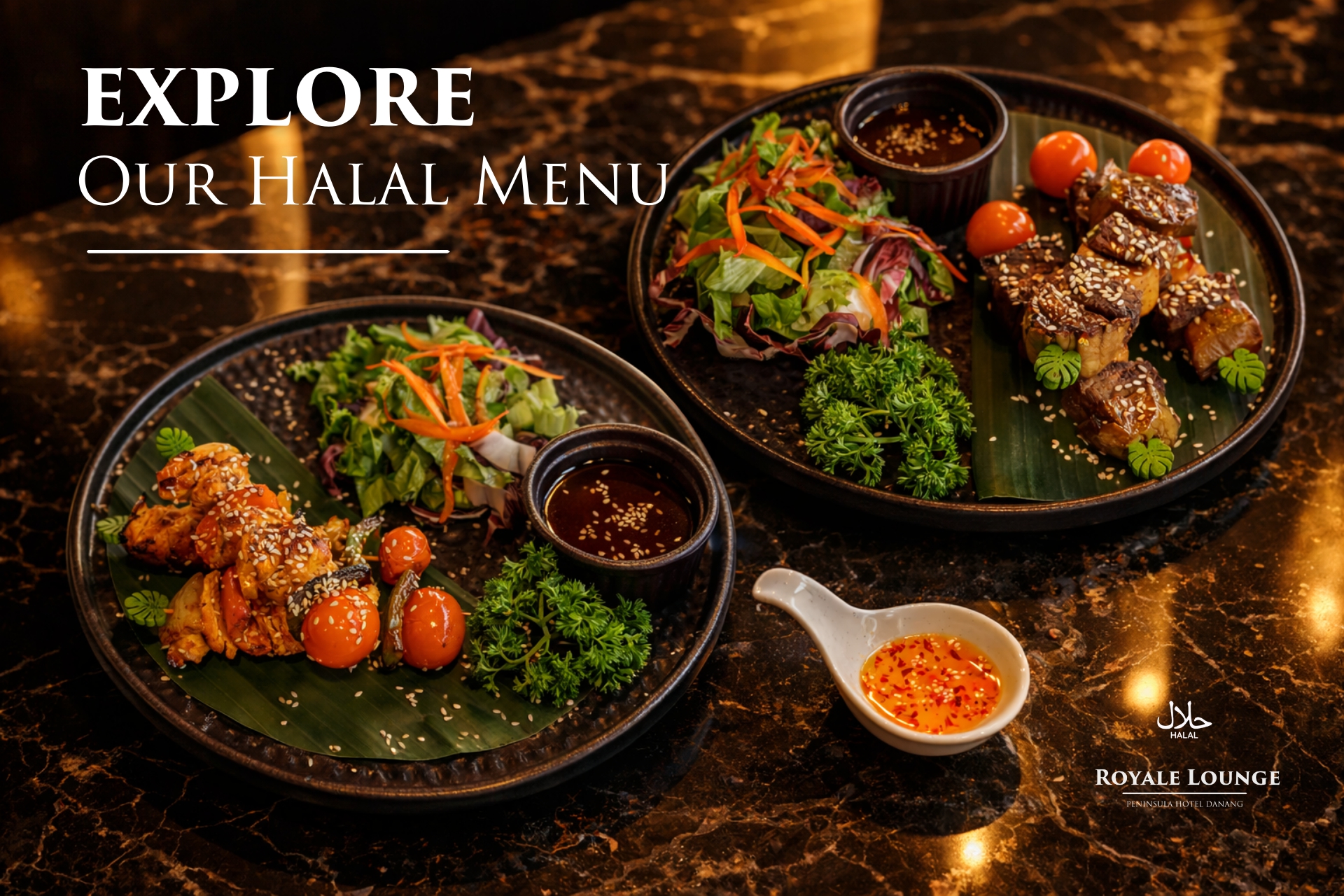 Khám phá trải nghiệm ẩm thực Halal tinh tế tại Royale Lounge. Với không gian sang trọng cùng tầm nhìn toàn cảnh biển và thành phố từ tầng 28, Royale Lounge mang đến trải nghiệm ẩm thực tinh tế đồng thời đáp ứng các tiêu chuẩn Halal dành cho thực khách Hồi giáo. Thực đơn được chuẩn bị theo tiêu chuẩn Halal, kết hợp hài hòa giữa hương vị Việt Nam đặc trưng và các món ăn quốc tế hứa hẹn mang lại trải nghiệm ẩm thực tinh khiết và trọn vẹn nhất dành cho các thực khách sành ăn.