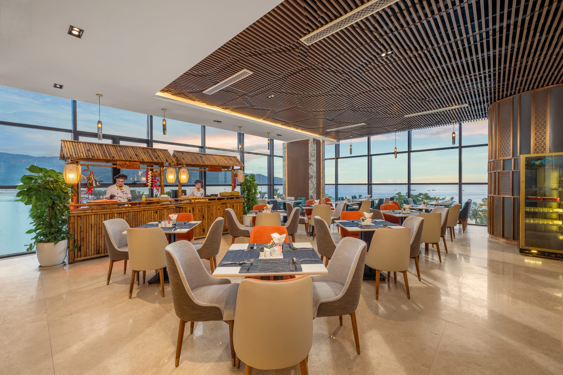 Từ buffet sáng đầy năng lượng cho đến bữa tối thanh lịch, Veranda Restaurant đưa bạn du hành qua thế giới ẩm thực Á – Âu đặc sắc. Dù là Buffet hay A La Carte, mọi trải nghiệm đều trở nên trọn vẹn trong không gian sang trọng và khung cảnh biển trời bao la.